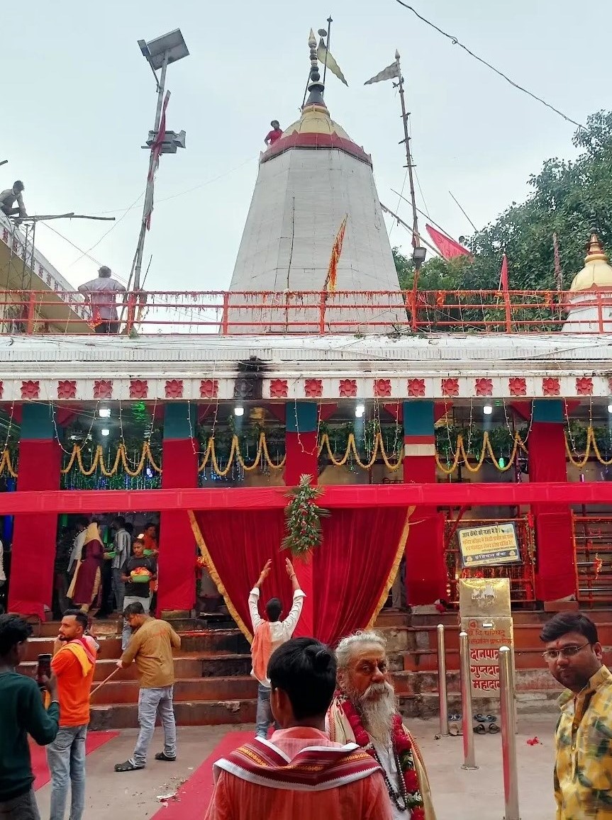 The temple architecture reflects traditional North Indian temple style, and the sanctum houses the sacred idol of Maa Vindhyavasini, beautifully adorned with flowers and ornaments.
